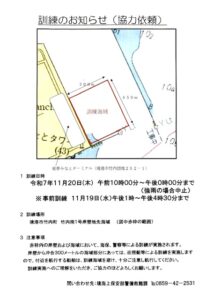令和7年11月19~20日境夢みなとターミナル側の岸壁および海域にて訓練が実施されます。(詳細は図を参照ください)